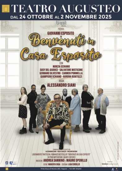 “Benvenuti in casa Esposito”, in scena da venerdì 24 ottobre a domenica 2 novembre 2025, inaugura la stagione del teatro Augusteo di Napoli, in Piazzetta duca d’Aosta 263.