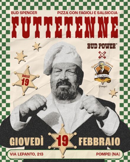 Futtetenne. Una parola diventata filosofia di vita, un invito a prendere le cose con leggerezza e a godersi ciò che conta davvero: il buon cibo, la compagnia, il sorriso. È attorno a questo spirito che ruota la proposta speciale de L’Antica Pizzeria Da Michele Pompei, che per tutto il mese di febbraio rende omaggio al mito di Bud Spencer, del “gigante buono” del cinema italiano.