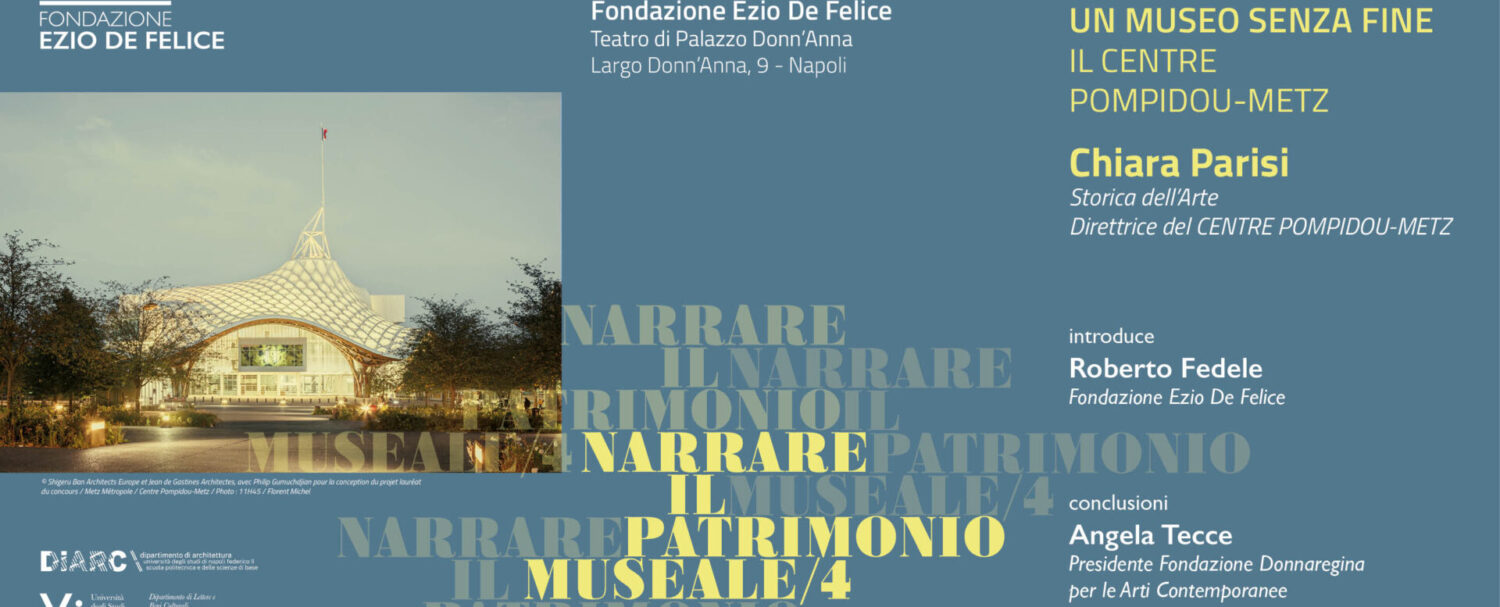 Arriva a Napoli il Centre Pompidou-Metz, tra le principali istituzioni museali europee dedicate all’arte contemporanea: sarà protagonista del 24° appuntamento della rassegna Narrare il Patrimonio Museale, promossa dalla Fondazione Ezio De Felice.
