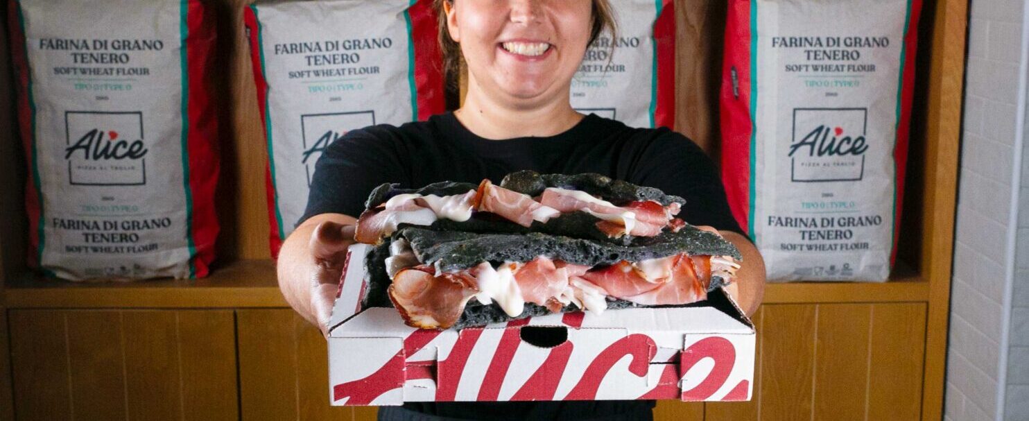Dal 24 novembre al 1° dicembre, per la settimana del Black Friday, in tantissimi punti vendita in tutta Italia, con una presenza importante a Milano e Roma, ma anche in altre città come Varese, Torino, Rovigo, Venezia, Genova, Livorno, Cagliari, Olbia ecc., sarà disponibile in edizione limitata la nuova pizza “nera”, con impasto al carbone vegetale. Un omaggio alla creatività e alla qualità, per dire, con il sorriso, che da Alice Pizza la Black Week è tutta nell’impasto. La novità sarà disponibile non solo al banco ma anche in delivery, tramite Pronto Alice (il call center telefonico) e dall’app1.