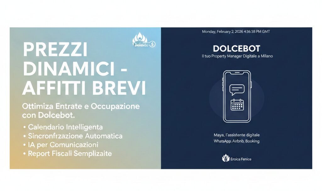 È importante, quindi, affidarsi a una soluzione unica per la gestione di tutto ciò che riguarda gli affitti brevi. Dolcebot è un property manager a Milano disponibile in digitale: per i proprietari di case che affittano a breve termine gestisce in automatico prenotazioni, comunicazioni, check-in e pagamenti 24 ore su 24, 7 giorni su 7, sincronizzando prezzi e disponibilità su Airbnb e Booking.