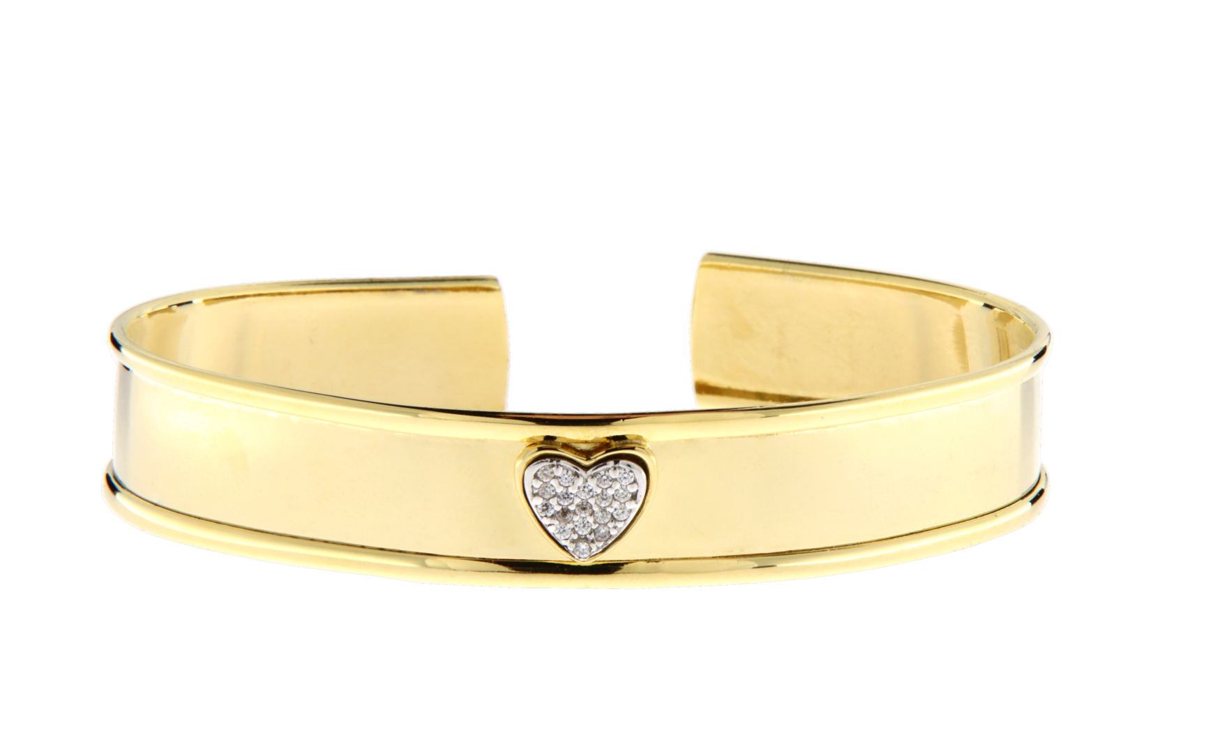 Per la linea Silver & Metal, ecco il bracciale Mya realizzato in ottone placcato oro 18 carati, con al centro un cuore in argento rodiato con zirconi. Rigido e regolabile grazie all’apertura, è pensato per le donne che amano uno stile essenziale, ma desiderano un gioiello capace di farsi notare.