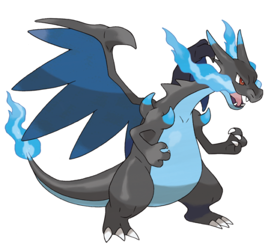 Charizard, Pokemon Fuoco-Volante, possiede due tipologie di Megaevoluzioni, ottenibili dall’interazione della Charizardite X o della Charizardite Y. Nel caso della prima, il Pokemon muta tipo, passando dal tipo Volante a Drago e ottenendo come abilità “Unghiedure”. Durante il fenomeno evolutivo, Charizard cambia colore delle squame, passando dall’arancio e giallo al nero e azzurro; MeegaCharizard X presenta grandi ali blu, un accrescimento dei suoi artigli e delle fiamme azzurre provenienti dalle sue fauci, donandogli un aspetto più oscuro.