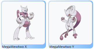 MegaMewtwo X (Pokemon Central Wiki,CiaobyDany) e MegaMewtwo Y (Pokemon Central Wiki,Mellabot).