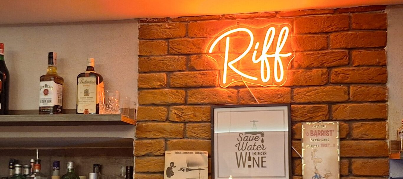 Dall’estetica musicale e rockettara (principalmente data dall’influenza del padre, ex suonatore di chitarra, e dalla sua passione per la musica che ha fatto la storia), il Riff Music & Drink può essere considerato un vero e proprio salotto accogliente che fa sentire i clienti subito in un luogo familiare; non bisogna però farsi ingannare dall’aspetto, poiché nonostante si tratti di un locale nato originariamente come cocktail bar, è aperto dalla mattina alla sera, offrendo così anche servizi di caffetteria, colazione ma anche pasti, tra cui piadine, saltimbocca, crostoni e l’iconica zingara ischitana (luogo di origine della famiglia Giannino).