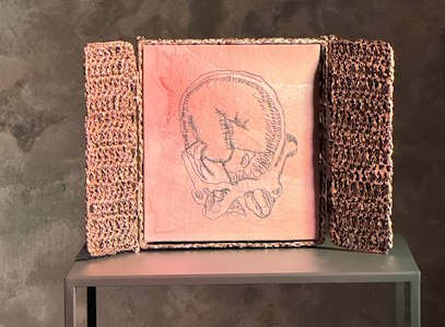 Il suo corpo agisce sotto il peso di un’imponente installazione in crochet: cinquemila metri di cotone pazientemente intrecciati  che incombono sull’altare maggiore trasformandolo in un luogo di attraversamento, un portale. Nelle cappelle laterali, è ancora il corpo dell’artista a riaffiorare, questa volta evocato in forme ambigue e liminali: il barlume di un feto, la traccia possibile di un cordone ombelicale, l’immagine del suo cranio trasfigurato in supporto plastico ad evocare l’antico culto delle anime pezzentelle.