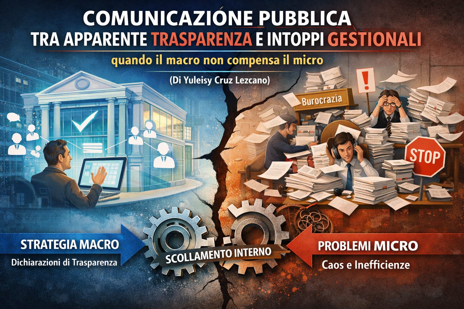 La comunicazione pubblica, almeno nei documenti ufficiali e nei programmi regionali, si proclama aperta, partecipativa e trasparente. In moltissime realtà italiane, le amministrazioni si presentano come soggetti che mettono il cittadino al centro dei processi decisionali, attraverso piattaforme digitali, consultazioni pubbliche e normative di accesso civico. Tuttavia, la retorica della trasparenza spesso cozza con la realtà gestionale interna degli enti: il macro, cioè la strategia complessiva di comunicazione e apertura, rischia di diventare inefficace se il micro, ovvero le pratiche quotidiane del personale e l’organizzazione interna, non funziona.