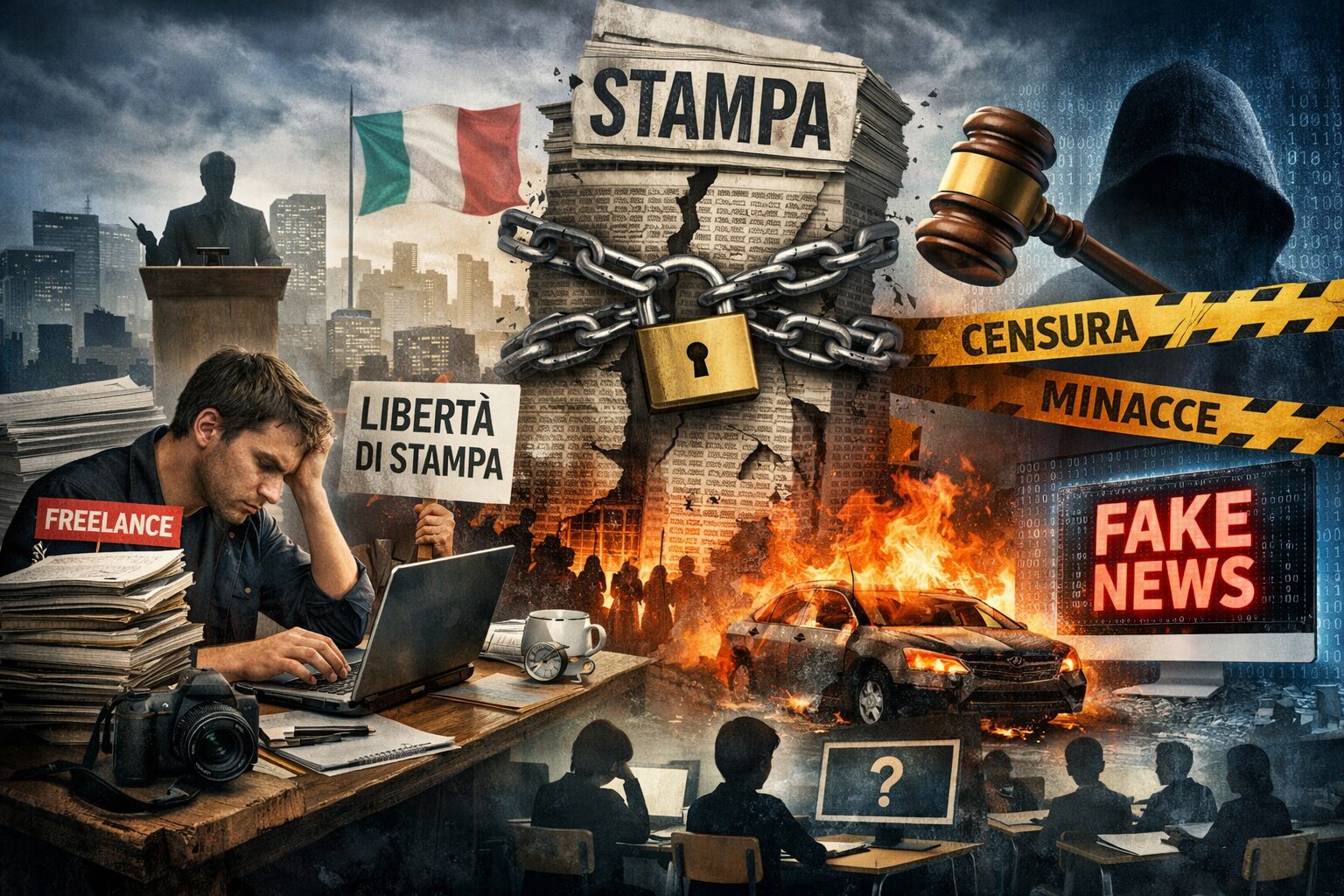 A livello pratico la fragilità di questo quadro si traduce in episodi estremi che denunciano come il giornalismo indipendente sia messo sotto pressione anche nel quotidiano. Un caso emblematico è l’esplosione dell’auto di un noto giornalista investigativo italiano, episodio riportato dai media internazionali, che ha suscitato allarme nella comunità dei cronisti per la possibile connotazione intimidatoria verso chi svolge inchieste su criminalità e potere politico. Questa debolezza del sistema informativo italiano trova ulteriori conferme nella stampa internazionale: un rapporto indipendente europeo sottolinea come la pluralità e l’indipendenza dei media siano sotto pressione in molti Paesi UE, con una crescente concentrazione della proprietà dei media, interferenze politiche nelle redazioni e avanzate strategie di influenza statale sulle principali emittenti pubbliche.