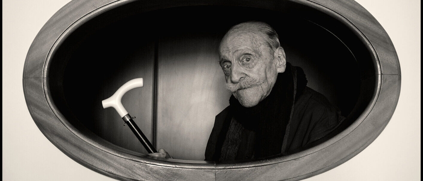 Questa è stata per me un’occasione straordinaria per apprezzarlo ed amarlo ancora di più e il ritratto che pubblico l’ho realizzato proprio in questo magico periodo, negli ultimi anni della sua vita. Ricordo che quel giorno lui era come sempre seduto sulla sua poltrona e mentre lo guardavo sentii di volerlo fotografare, fu una vera ispirazione ed io subito gli parlai del mio desiderio. Inizialmente non si mostrò molto contento ma poi dopo qualche insistenza, si lasciò convincere. Allora cominciai a girare per casa cercando un’inquadratura che potesse soddisfarmi, perché avevo qualche idea, ma non ancora ben delineata. Dopo poco focalizzai il mio interesse su di un oblo posto sulla parete tra il salone e uno dei corridoi, che avrebbe potuto incorniciare il ritratto, esaltandolo. Allora accompagnai mio padre dietro quell’oblo, lo feci salire su di un piccolo scanneto perché l’apertura sul muro era un po alta e chiaramente gli portai il suo inseparabile bastone, senza il quale è come se gli fosse mancato una parte del corpo. Lui senza che io gli dicessi niente si mise in posa guardando nell’obiettivo con uno sguardo sbarazzino che sembrava quello di un attore consumato, abituato da sempre a stare avanti alla cinepresa…io feci un solo scatto. Era stato incredibilmente bravo nel posare ed io non me lo aspettavo proprio. Quando dopo qualche giorno gli portai la foto stampata, lui mi guardò e disse: ” ma sembro un vecchio “. Aveva una novantina d’anni, ma si sentiva come un ragazzino. Sicuramente è stato l’uomo più importante che ho fotografato. Grazie di tutto papà, ti voglio bene.