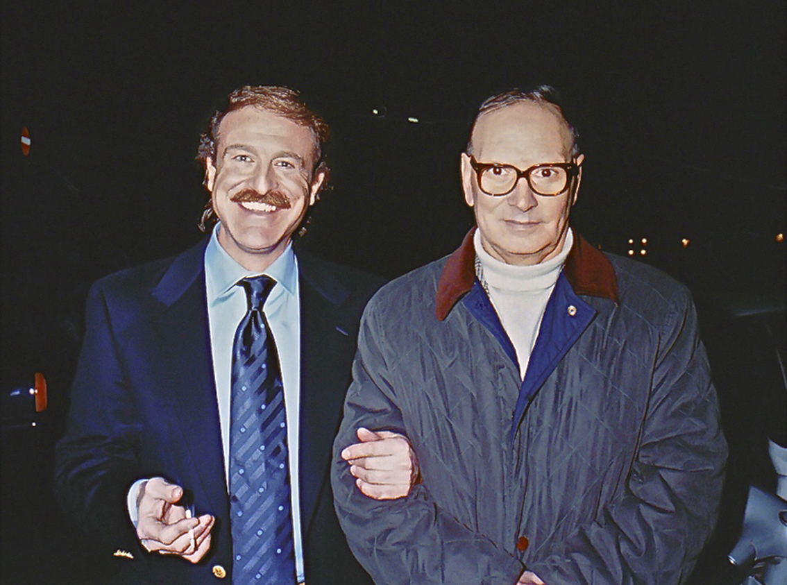Tra questi anche Ennio Morricone partecipò al progetto. Contattai i personaggi con l’aiuto di una superefficiente segretaria di presidenza, Marisa Tatananni, di cui ero innamorato e con cui ho condiviso uno stupendo periodo della mia vita. Ricordo che quando andammo a casa di Morricone, lui venendoci incontro ci accolse come grandi amici. Era talmente umile e amichevole che sembrava di conoscerlo da sempre e quel timore reverenziale, quella soggezione dovuta alla nostra grande ammirazione, scomparve subito e mutò in un sentimento di affetto e di tenerezza. Discutemmo del progetto, mi fece leggere lo scritto che aveva dedicato a Roma e che sarebbe stato pubblicato nel libro, chiedendomi se mi piacesse e se andava bene. Io a quella domanda mi imbarazzai un pò e mi affrettai a rispondere che era stupendo. Poi discorrendo del più e del meno, venne fuori che io suonavo la chitarra e a quel punto mi disse una cosa bellissima che serberò sempre nel mio cuore: “Sai, ho capito subito che sei un musicista. Le tue fotografie hanno un ritmo compositivo musicale che appartiene a chi é sensibile all’armonia dei suoni”. L’anno successivo inaspettatamente l’editore mi telefonò dicendomi che volevano darmi il premio “Città di Roma” per le fotografie pubblicate nel libro e che insieme a me lo avrebbe ricevuto anche Ennio Morricone per il suo scritto. Rincontrai il maestro alla premiazione e lui mi chiese di andarlo a trovare; io gli dissi che in quella occasione sicuramente gli avrei fatto anche un ritratto. Poi purtroppo ho sempre rimandato per mille impegni e con mio grande rammarico non ho potuto manterere quella promessa fatta. Ciao e grazie Ennio, sei e sarai sempre con noi. La tua musica evocherà costantemente la tua presenza.