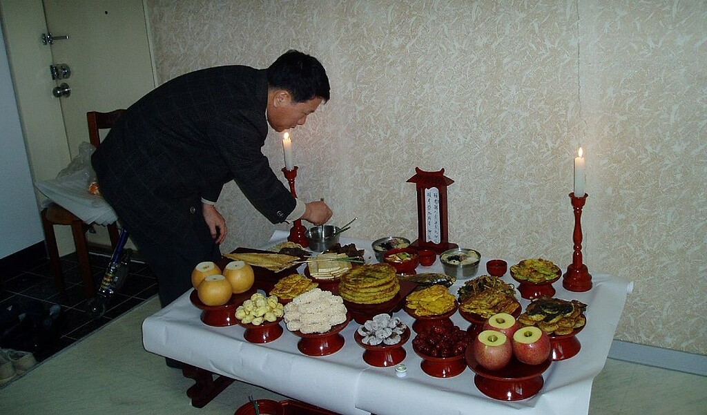 Il Jesa non è solo un banchetto, ma un momento sacro di riflessione e connessione spirituale: prima di accomodarsi a tavola, i membri della famiglia assumono un atteggiamento rispettoso e composto, indossando degli abiti tradizionali – hanbok – per esaltare l’importanza dell’occasione. Ognuno fa dei profondi inchini (큰절, keunjeol) di fronte alla tavola, accompagnati dalla recitazione di formule rituali che invocano la presenza degli antenati. Il cibo rimane sulla tavola per un po’, perché, secondo la tradizione così gli spiriti possono gustare simbolicamente l’essenza. Dopo che questa fase è terminata, i familiari si riuniscono per condividere i piatti: momento conosciuto come Eumbok che rappresenta l’atto di ricevere e trasmettere le benedizioni degli antenati attraverso il cibo.
