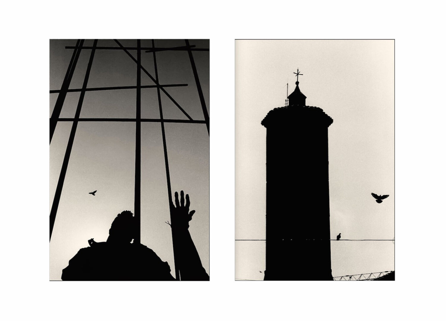 Nel fotografare le città di questo nostro stupendo Paese, per la realizzazione dei miei libri commissionati dalla TAV – Treno Alta Velocità, la mia attenzione era prevalentemente rivolta ai monumenti e alle architetture che caratterizzavano i luoghi, o che, in qualche modo, mi colpivano particolarmente. Quindi, solitamente in orari diversi, per catturare la luce perfetta, cercando sempre un’inquadratura inedita proprio per evitare gli stereotipi di immagini troppo sdolcinate e cartolinesche, passeggiando, mi inoltravo in strade e vicoli, restando sempre concentrato a cogliere quel particolare, quello scorcio o quella struttura che toccava e stimolava la mia creatività. Era ogni volta come se andassi a caccia di tesori nascosti e, quando individuavo il soggetto esatto e la prospettiva corretta, mi sentivo come un cane da caccia che punta la sua preda. Tale scoperta mi dava sempre una grande emozione; era un momento magico che mi faceva dimenticare la stanchezza per i chilometri fatti a piedi, con la borsa piena di obiettivi e macchine fotografiche. Ero continuamente alla ricerca di suggestive opere, però, talvolta, ero anche attratto dai tanti pennuti che abitano le nostre belle città e che possono diventare addirittura un segno grafico, che impreziosisce ed arricchisce l’immagine stessa. Nello specifico, ad affascinarmi sono le colombe, forse anche per la loro intensa simbologia, in virtù della quale diverse culture antiche le consacravano ad importanti dei e intere popolazioni le veneravano, fino ad arrivare alla religione Cattolica, per la quale sono emblema dello Spirito Santo. A ciò si aggiunge la loro forte valenza alchemica, come rappresentazione della Luna philosophorum, ossia il Mercurio alchemico, ed esoterica, come il principio del bene, anche in virtù del loro candore.