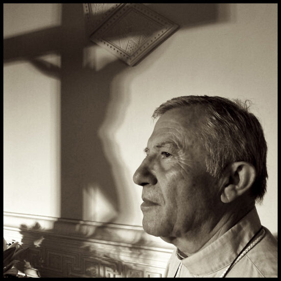 Tanti anni fa una brutta depressione mi rase al suolo. Senza più riferimenti, ne interessi e senza la voglia di vivere, cominciai a cercare…Desideravo riempire quel vuoto che si era manifestato dentro di me. Fu allora che “per caso” entrai in una chiesa di Posillipo e incontrai un piccolo sacerdote: era padre Lorenzo. Subito lui mi disse che ero nel momento favorevole per riempire quel deserto e quell’aridità che mi straziava l’anima, e mi invitò a seguire un cammino di fede nella sua chiesa. Da allora è passato tanto tempo ma io non ho più lasciato quella parrocchia. Lorenzo con amore ma qualche volta anche con severità mi ha educato all’ascolto della Parola di Dio, insegnando con perseveranza e dedizione assoluta. Un prete d’altri tempi, il cui intento primario era senza alcun dubbio l’evangelizzazione. Quel giorno per caso avevo con me la fotocamera e avendo notato nella nostra chiesa l’ombra che il crocifisso proiettava sul muro, ebbi l’intuizione. Di corsa andai in sacrestia presi sotto il braccio padre Lorenzo, lo portai li avanti e scattai. Un unico click, ma il risultato fu esattamente quello che mi ero immaginato: l’Essenza, lo Spirito di Cristo alle sue spalle lo guidava. Purtroppo proprio il covid ha spezzato la vita di questo piccolo, grande sacerdote, a cui io e centinaia di altre persone siamo grati. Grazie Lorenzo, per essere stato nella nostra vita e per averci accompagnato per mano ad una conoscenza più profonda di Dio e della Sua Volontà.