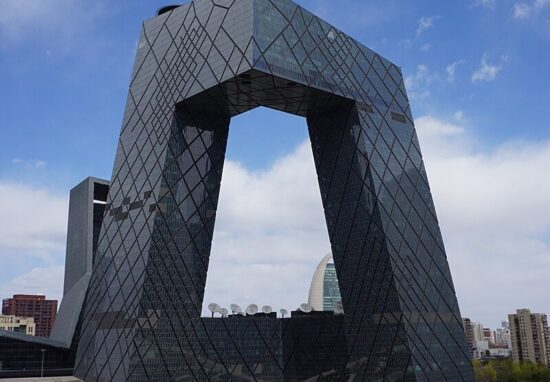 A Pechino sorge la sede della China Central Television (CCTV), un grattacielo dalla forma particolare ad “anello quadrato” con un centro aperto. La struttura è composta da due torri a forma di “L” rovesciata, unite a formare un unico complesso architettonico dagli angoli netti e moderni.