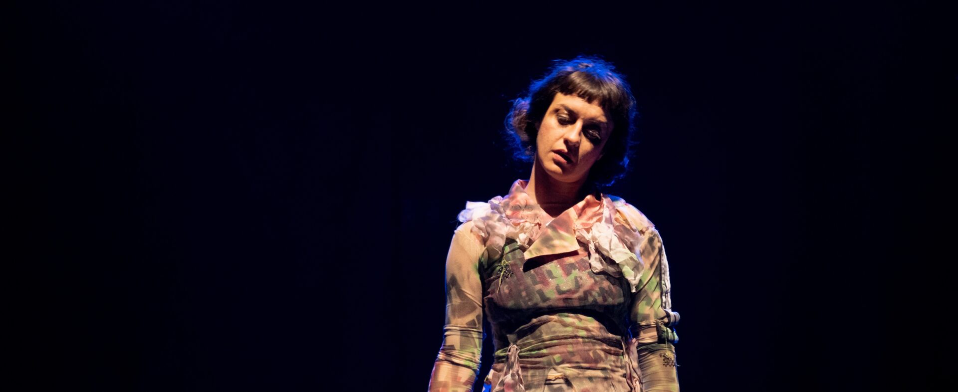 Al centro del primo monologo emerge la presunzione umana: quella che ci ha portato ad arrogarci il diritto di decidere quale posto nel mondo dovessero occupare tutte le altre specie animali. A colpire anche il costume dalle fini e finte trasparenze, trasversalmente attraversato dalla ripetizione della parola sorellanza, che si fa mantra ed esortazione esasperata al contempo, nonché ricerca di un fronte comune e partecipato. I costumi, tutti creati da Dario Biancullo – designer, attivista e artista multidisciplinare attivo sul territorio napoletano, che avevamo avuto occasione di apprezzare già lo scorso anno al Napoli Queer Festival con il progetto Fashion is Binary – includono anche quello da “re dei topi”, evidente richiamo alla figura di Tchaikovskyana memoria.