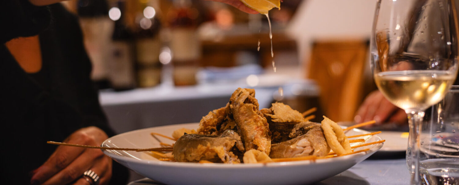 Fin dagli inizi, i Rosolino hanno scelto di restare fedele alla tradizione gastronomica napoletana, pur accompagnandola con uno sguardo attento all’evoluzione dei gusti. La cucina privilegia il pescato del Golfo: pezzogne, orate, saraghi e aragoste raccontano un mare ricco e riconoscibile. I grandi classici non mancano: linguine alla Santa Lucia con varietà di molluschi e frutti di mare e pennette alla Cantinella con filetto di pomodoro San Marzano, melanzane e mozzarella. Accanto a questi, la carta propone abbinamenti ricercati come gli spaghetti cacio pepe e tartara di gambero agli agrumi, le fettuccelle di Gragnano agli scampi, spinacini e limone candito o il risotto con speck, radicchio e riduzione di Aglianico. La tradizione partenopea più verace è ben rappresentata dagli ziti spezzati alla genovese, dalla pasta e patate con provola e dai classici secondi di mare come la spigola su piastra di sale e la frittura di paranza. Per chi preferisce la carne, non mancano le polpette al ragù napoletano o il filetto di manzo alla griglia. Si chiude in dolcezza con proposte come il babà con poché di fragole, il fagottino di mela annurca e la caprese con gelato.