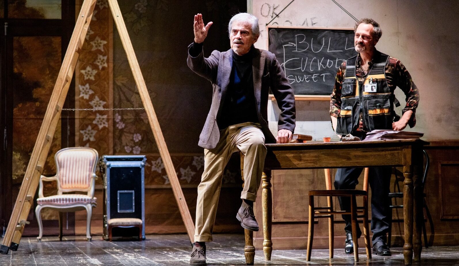 I ruoli si invertono, e ora è Maurizio che sale e scende dalla scala per puntare le luci, mentre Carmine è diventato la mente pensante. Questo appare come un normale ribaltamento dei ruoli, ma la scoperta di inquietanti verità scuoterà i precari equilibri precedenti e farà precipitare la trama verso un finale inatteso. Il metateatro, specialità di Pirandello, viene interpretato da Edoardo Erba in chiave attuale e irriverente. La lezione del maestro siciliano irrompe invece di sorpresa, quando il rapporto fra i due personaggi va oltre le previsioni e si trasforma in un duello sempre più scoperto, dove identità e ruoli si incrinano fino a confondersi. Divertente, intelligente e coinvolgente, questo Pirandello Pulp diretto da Gioele Dix si impone all’attenzione del pubblico come una delle novità italiane più interessanti della stagione, proprio per la capacità di far convivere ironia e inquietudine sotto la stessa superficie.