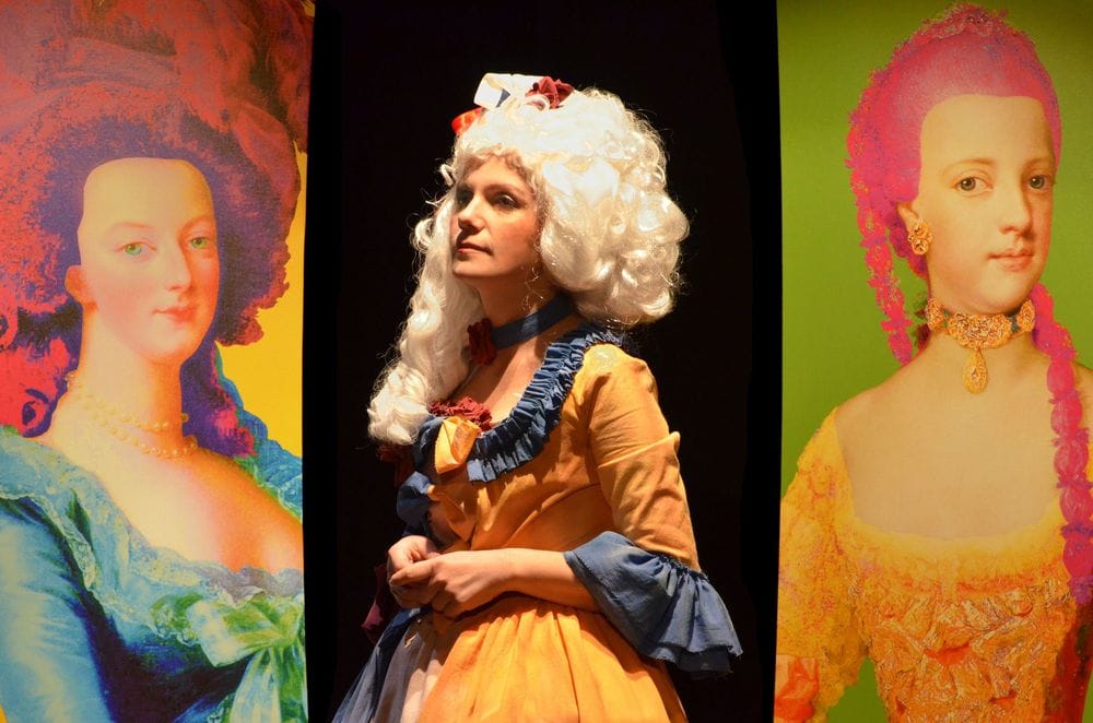 Regine Sorelle è la storia di una sorellanza: le sovrane in questione sono, nella fattispecie, Maria Antonietta e Maria Carolina, a loro volta figlie della regina d’Austria, Maria Teresa. Lo spettacolo appartiene alla rassegna Neapolis 2.5 – 25 eventi per celebrare i 2500 anni della città di Napoli, disegno supportato da MIC Direzione Spettacolo. Maria Antonietta e Maria Carolina sono osservate e scandagliate all’interno del proprio ruolo di donne, mogli e regine. Eppure, l’accento da parte della narrazione è posto di proposito soprattutto sul legame di sangue che scorre tra le due regnanti. In effetti, sia Maria Antonietta che Maria Carolina erano solo due bambine spensierate quando conobbero loro malgrado i propri destini e, forse, al tempo della propria infanzia, ignoravano anche le conseguenze del proprio trono, così come il costo di una vita tanto esposta e sotto i continui riflettori. Tra l’altro, l’era storica in cui le due sorelle si ritrovarono a regnare non fu affatto delle più quiete, tutt’altro, essendo essa attraversata dai tumulti prima della Rivoluzione francese e dopo della Repubblica napoletana. Nel frattempo, mentre Maria Antonietta fu data in moglie a Luigi XVI (morendo in seguito sotto la ghigliottina il 16 ottobre 1793 in Place de la Concorde a Parigi, davanti a quello stesso popolo che l’aveva tanto amata), a Maria Carolina toccò invece la fortuna di avere come consorte Ferdinando di Borbone, re di Napoli (lei concluse la sua esistenza in solitudine, in esilio e distante dalla città che l’aveva adorata e ricambiata).